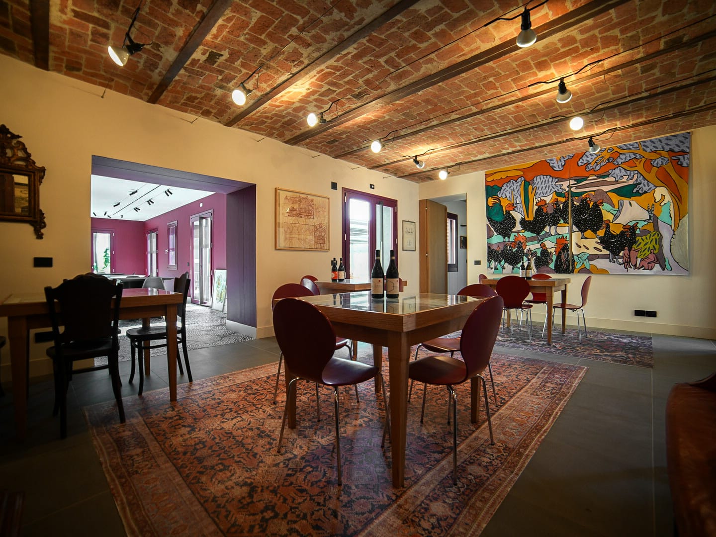 Da sempre. Persino la progettazione architettonica ha incorporato le idee e le opere di artisti che hanno contribuito a caratterizzare alcuni elementi iconici della nostra cantina, come ad esempio il cancello di ingresso (Untitled, 2023) disegnato da CCH, le fontane esterne e la prima sala degustazione di Maurizio Donzelli (Cartesio’s Drawings), la seconda sala degustazione (La natura delle cose) di Giorgio Bertelli, così come la bottaia è animata dalle presenze di cinque sagome (5 sagome, 2021) scolpite e dipinte da Alice Visentin che custodiscono di giorno e di notte il vino che affina negli anni.