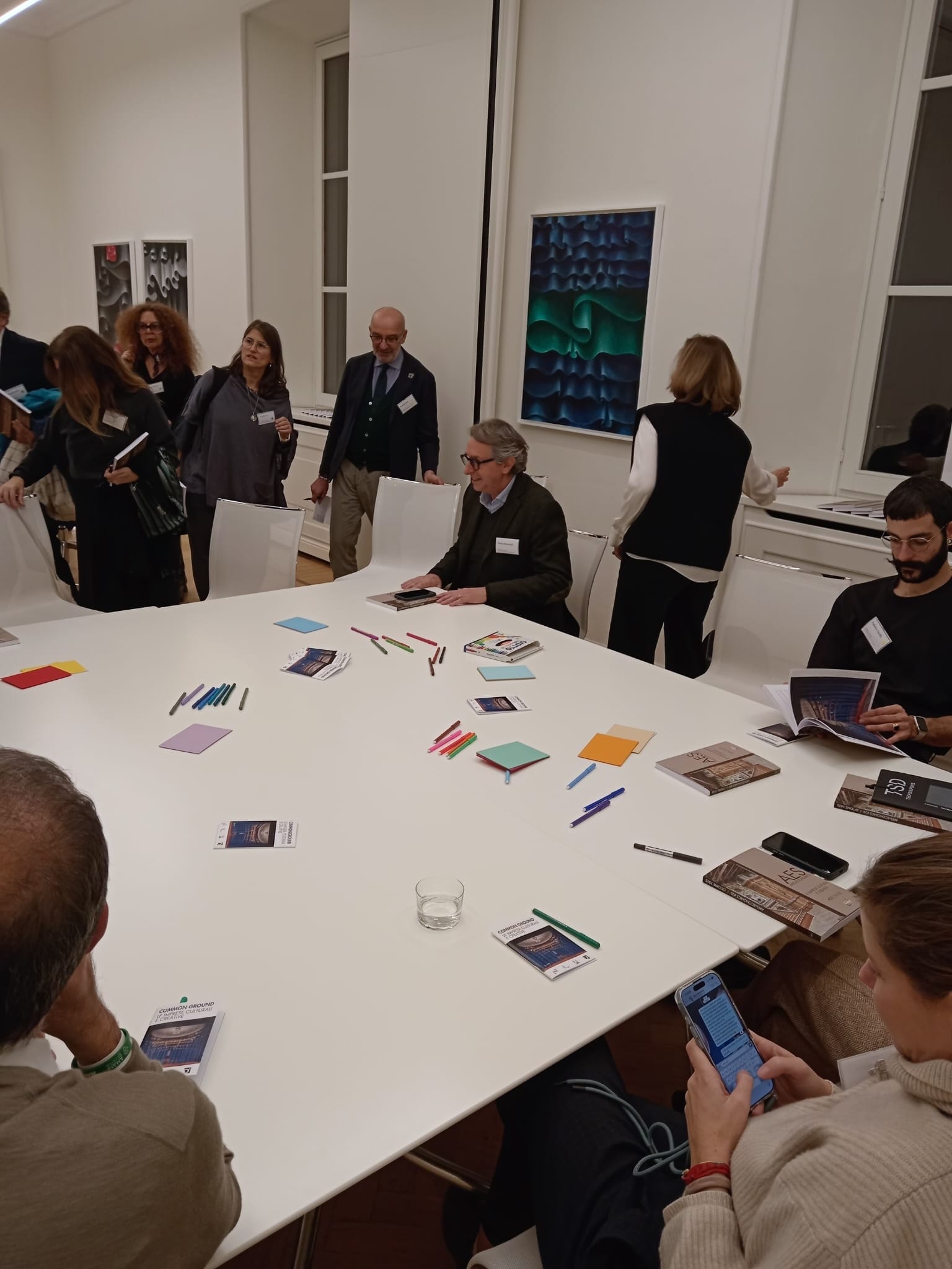 Il tavolo si è aperto con un invito semplice ma rivelatore: presentarsi, raccontare la propria professione e annotarla su un foglietto. Alla fine dell’incontro, i foglietti sono stati disposti sul tavolo, creando una rappresentazione visiva dell’intero ecosistema.