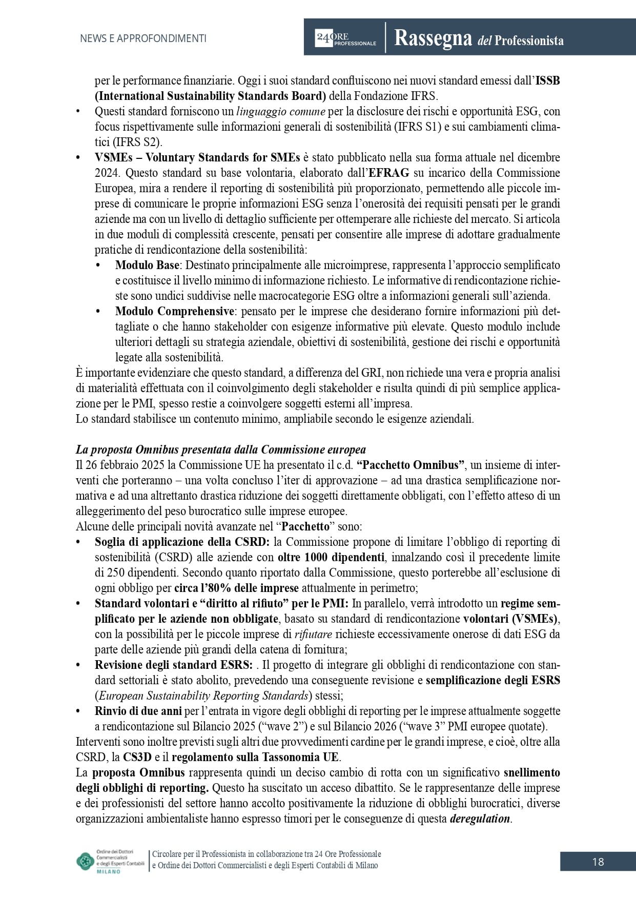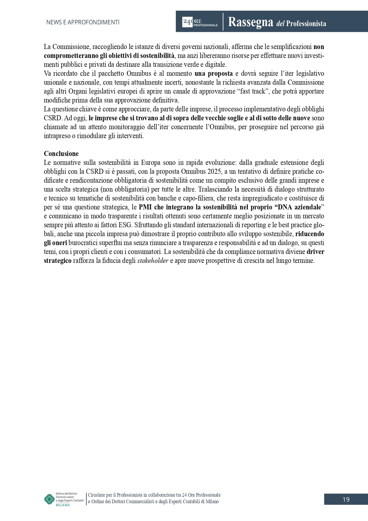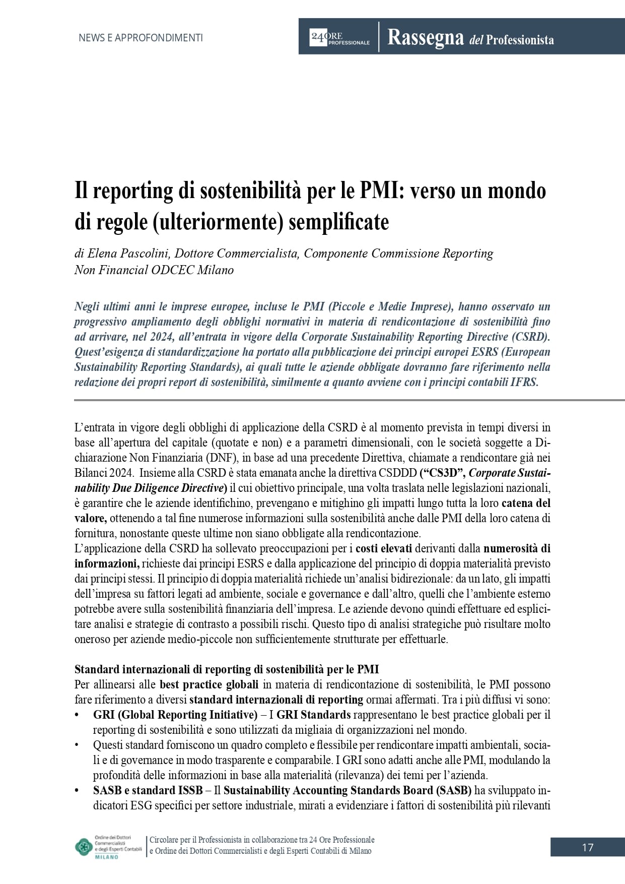 Le nuove regole per il reporting di sostenibilità per le PMI su "Rassegna del professionista"