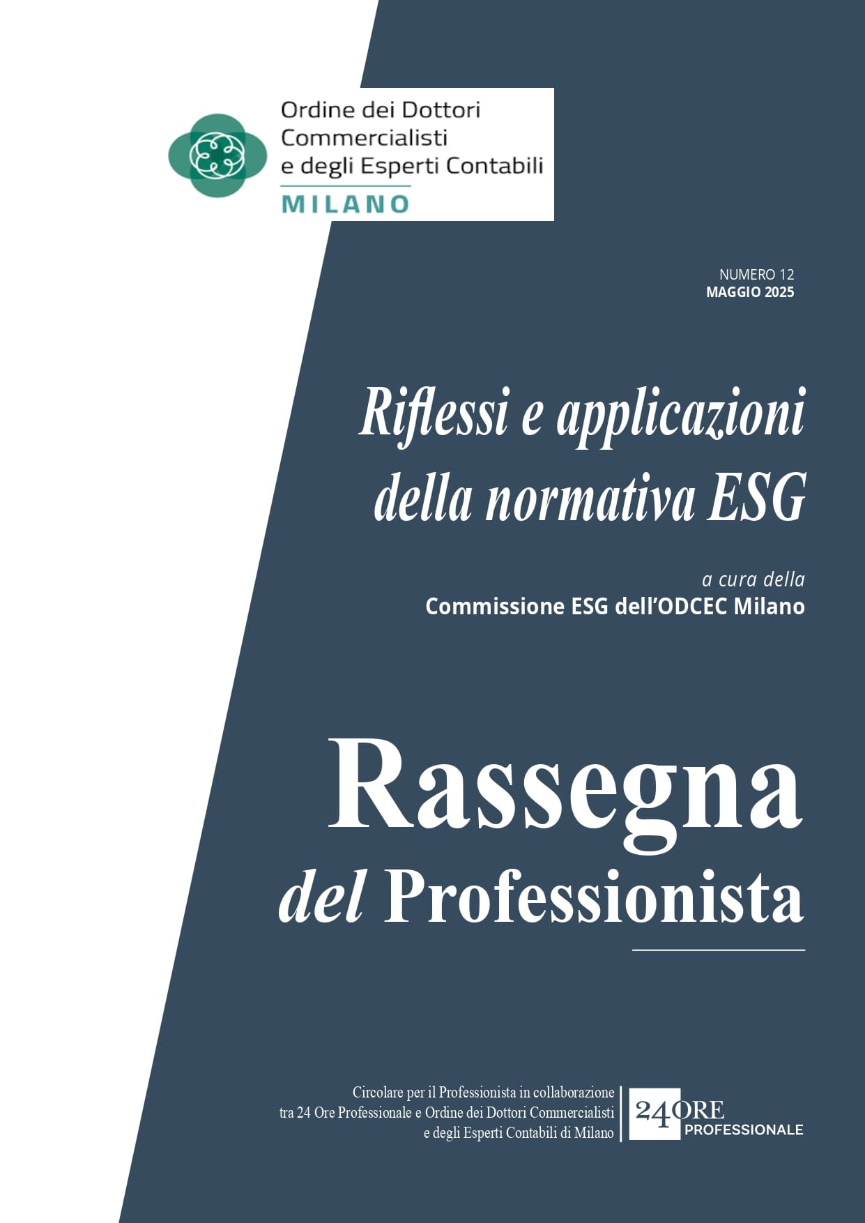 Elena Pascolini, Partner dello Studio Lombard DCA, ne ha scritto sul numero 12 della rivista Rassegna del professionista, pubblicato a maggio 2025 e dedicato al tema "Riflessi e applicazioni della normativa ESG", a cura della Commissione ESG dell’ODCEC Milano.