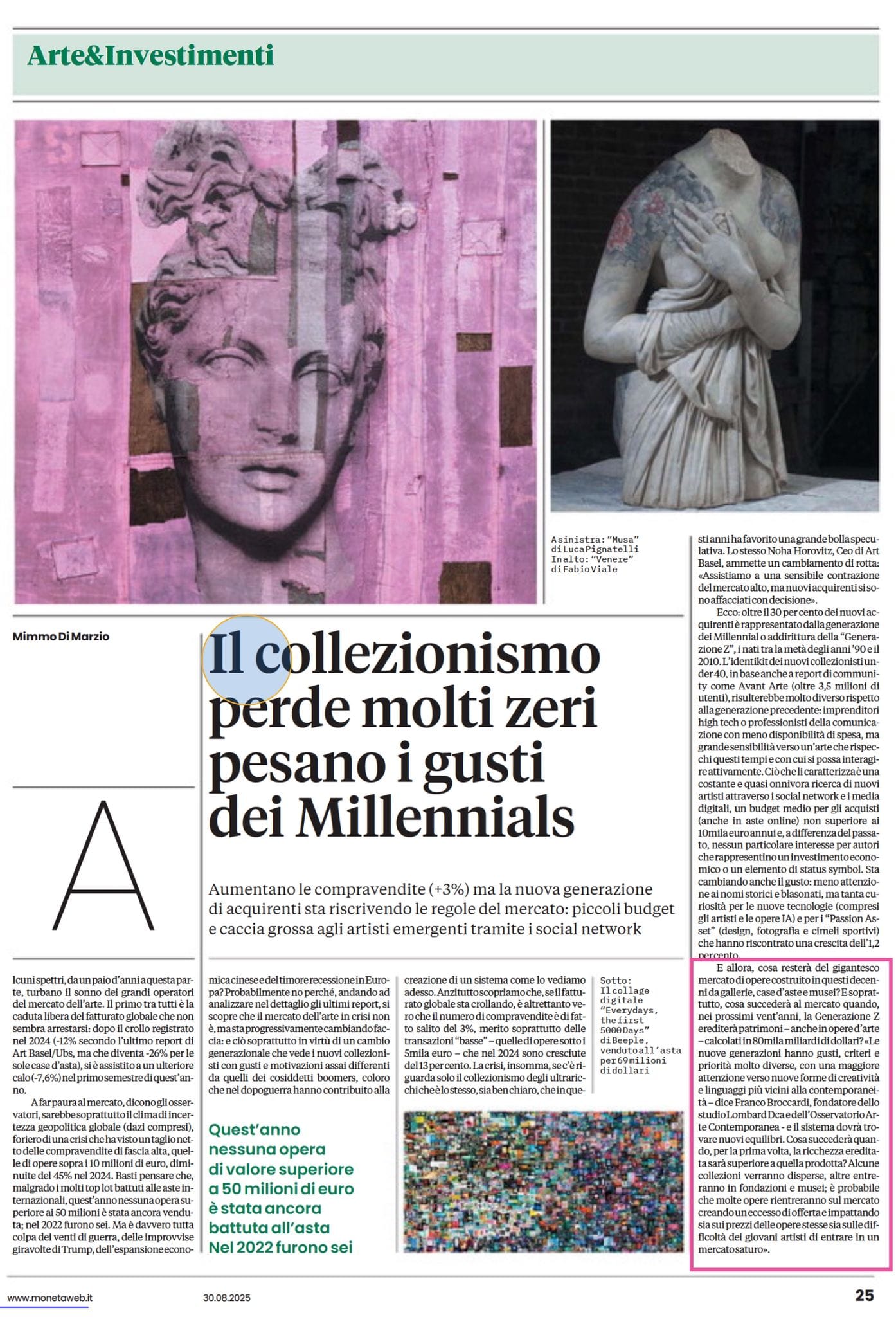 Moneta, Il Giornale / Libero / Il Tempo 30 agosto 2025